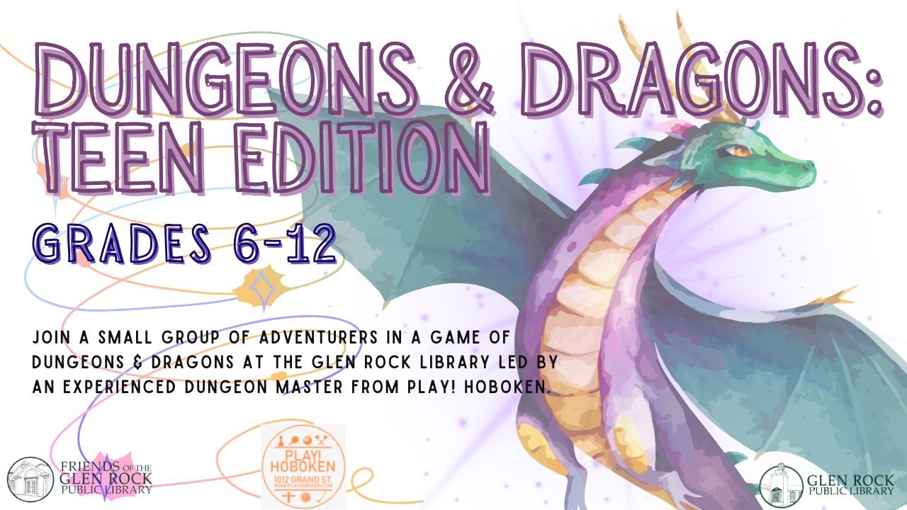 Teen Event Sponsored by the Friends of the Glen Rock Public Library.
